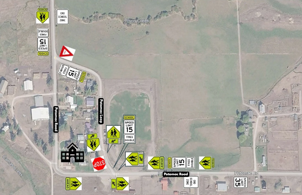 Missoula County opened a public hearing period to establish a school zone and school zone speed limit at Potomac Elementary, located at 29750 Potomac Road in Potomac. At the end of the hearing period, the county commissioners will consider a resolution to: